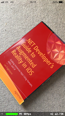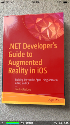 The ViewController constructor creates an instance of the SceneViewDelegate class and sets the instance as the Delegate property of the ARSCNView. In addition, the ViewDidAppear method is modified to retrieve the image to be detected from the asset catalog, and set it as the DetectionImages property of the ARWorldTrackingConfiguration object.