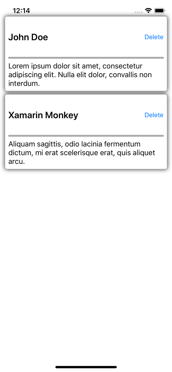The overall effect of this code is that StackLayout uses a bindable layout to display a collection of CardView objects: