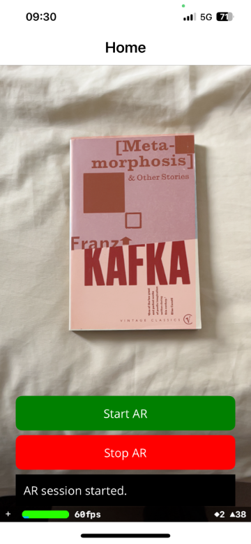 In addition, the StartARSession method retrieves the image to be detected from the asset catalog, and sets it as the DetectionImages property of the ARWorldTrackingConfiguration object.